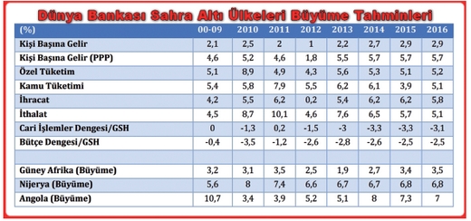EN HIZLI BÜYÜYENLER - Afrika’nın hızlı büyüyen ekonomileri hangileri? - Botsvana, Güney Afrika Cumhuriyeti, Mozambik, Ruanda, Uganda şu anda IMF’nin parlayan yıldızları. Parlama sebepleri de Çin ve Hindistan’dan bunların ürettiği hammaddeye taleplerin fazla olması. Fakat bunun şöyle dezavantajı var, talepler kesildiği zaman bunların da büyümesi kesilecektir. Dolayısıyla Çin ve Hindistan hızlı büyümeden yavaş yavaş düşüşe geçtiği için bunun Afrika’ya yansıması negatif olacaktır. Hammaddeye bağlı bir ekonomi modelinin talep edilen fiyatlara olumlu etkisi olabileceği gibi olumsuz da etkileyebilir. Bu, ülkelerin büyüme stratejilerini kırılgan yapar. Bunun daha sürdürülebilir şekle getirilmesi için de altyapı ve eğitimin, yaratıcı zekanın kuvvetli olması gerekir. Bu da Afrika’da çok fazla yatırım ve kalkınma modellerinin geliştirilmesini gerektiriyor. Bu işin bir de güvenlik mimarisi içinde gerçekleştirilmesi gerekiyor.
